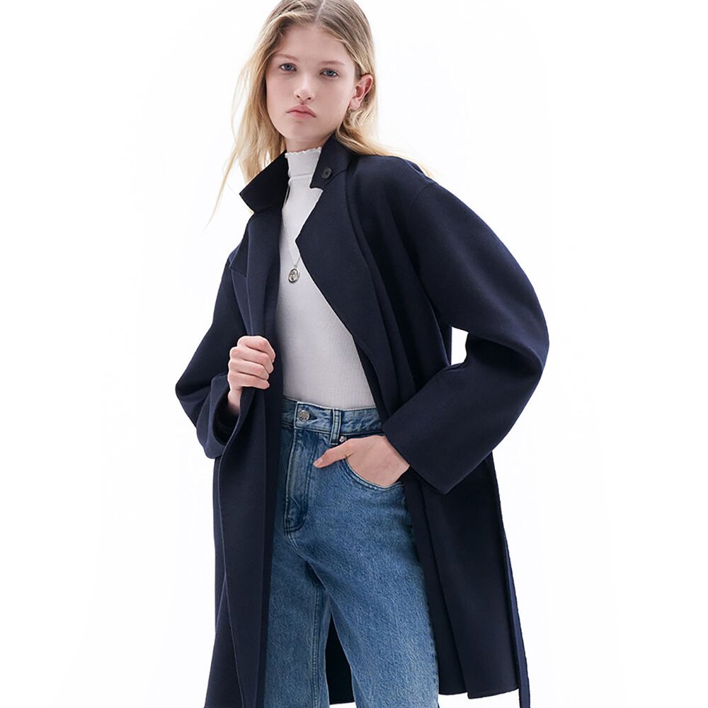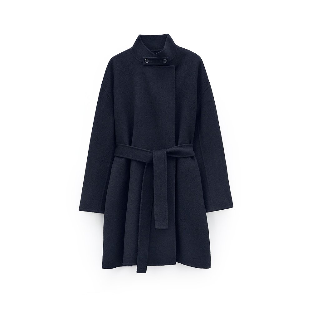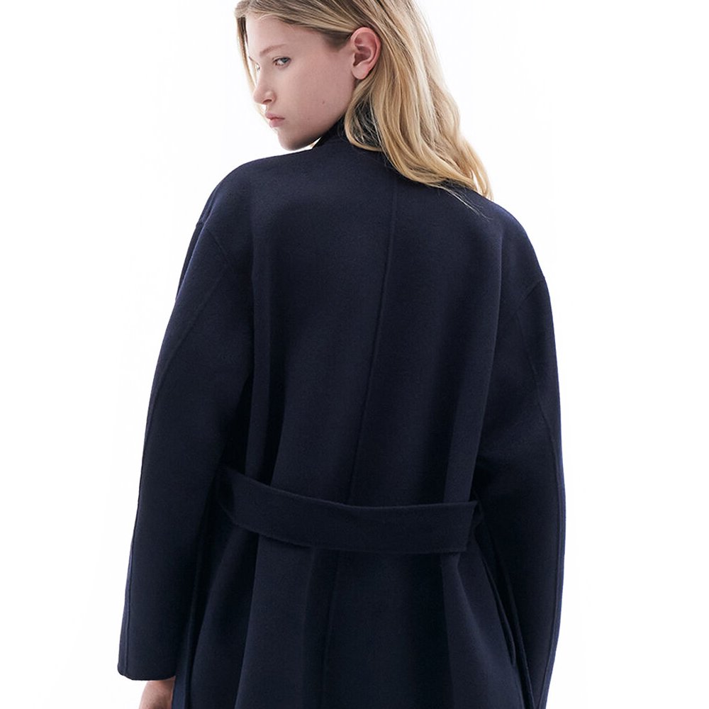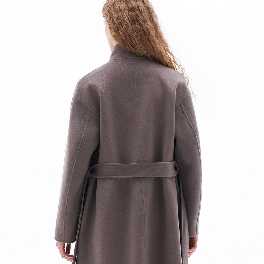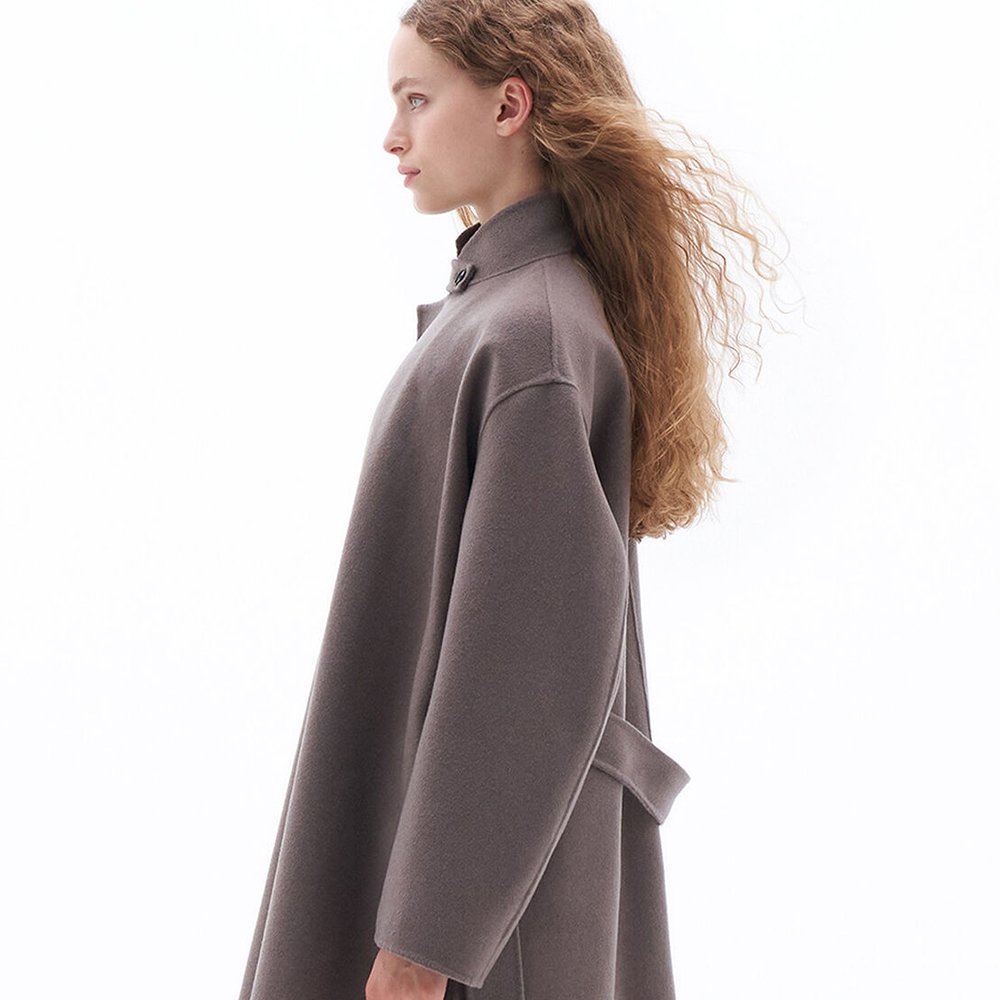 Oversized wrap jacket in double-faced brushed wool and cashmere, with hand-stitched edges. Designed with an oversized fit.