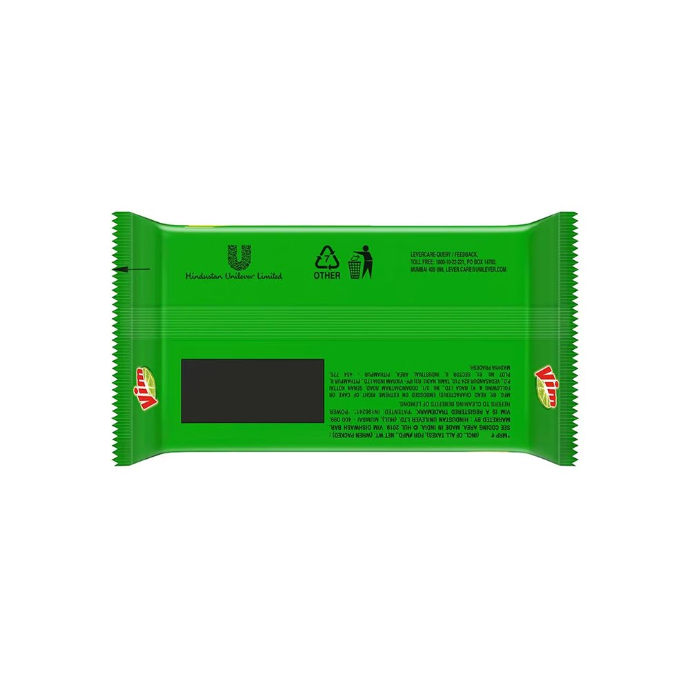 | Benefits: | Vim Dishwash Bar has the power of 100 lemons(power refers to the cleaning benefits of lemons) which helps in the fastest removal of burnt food(as per the independent lab test conducted on burnt food stains). |